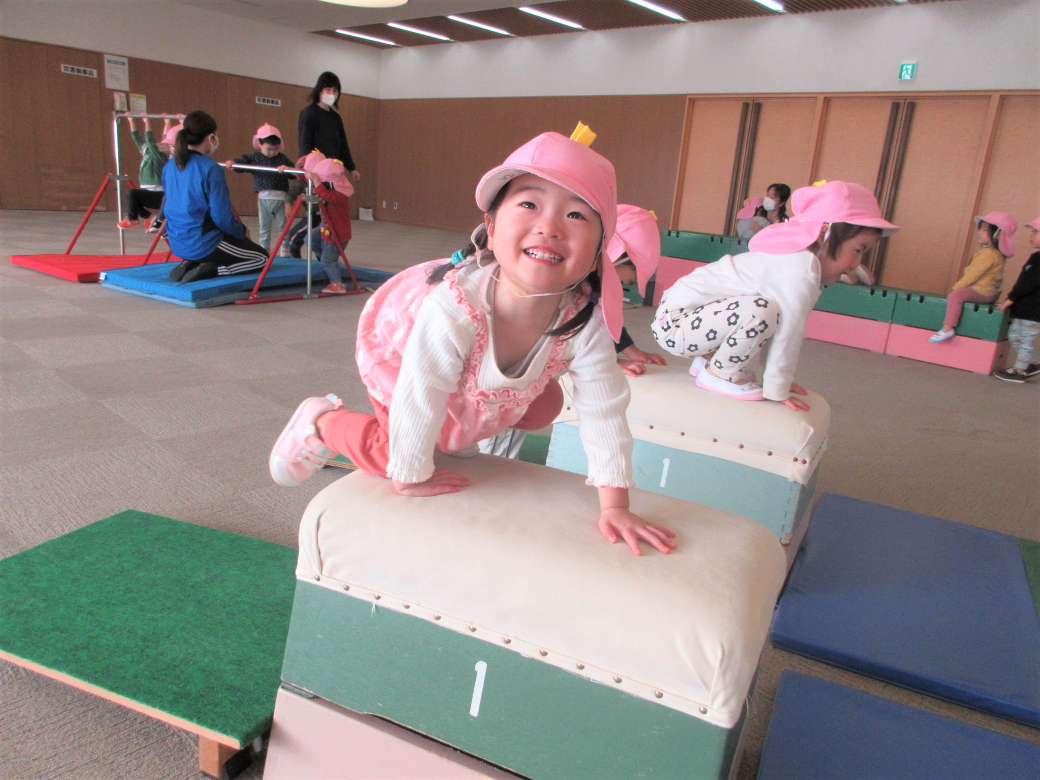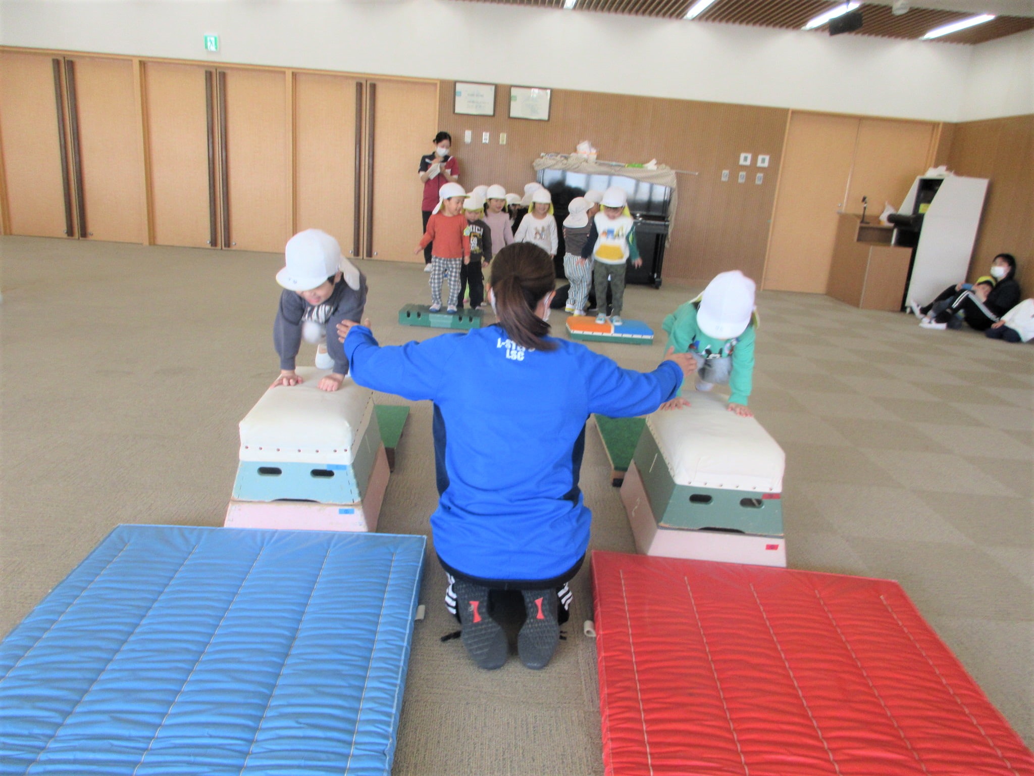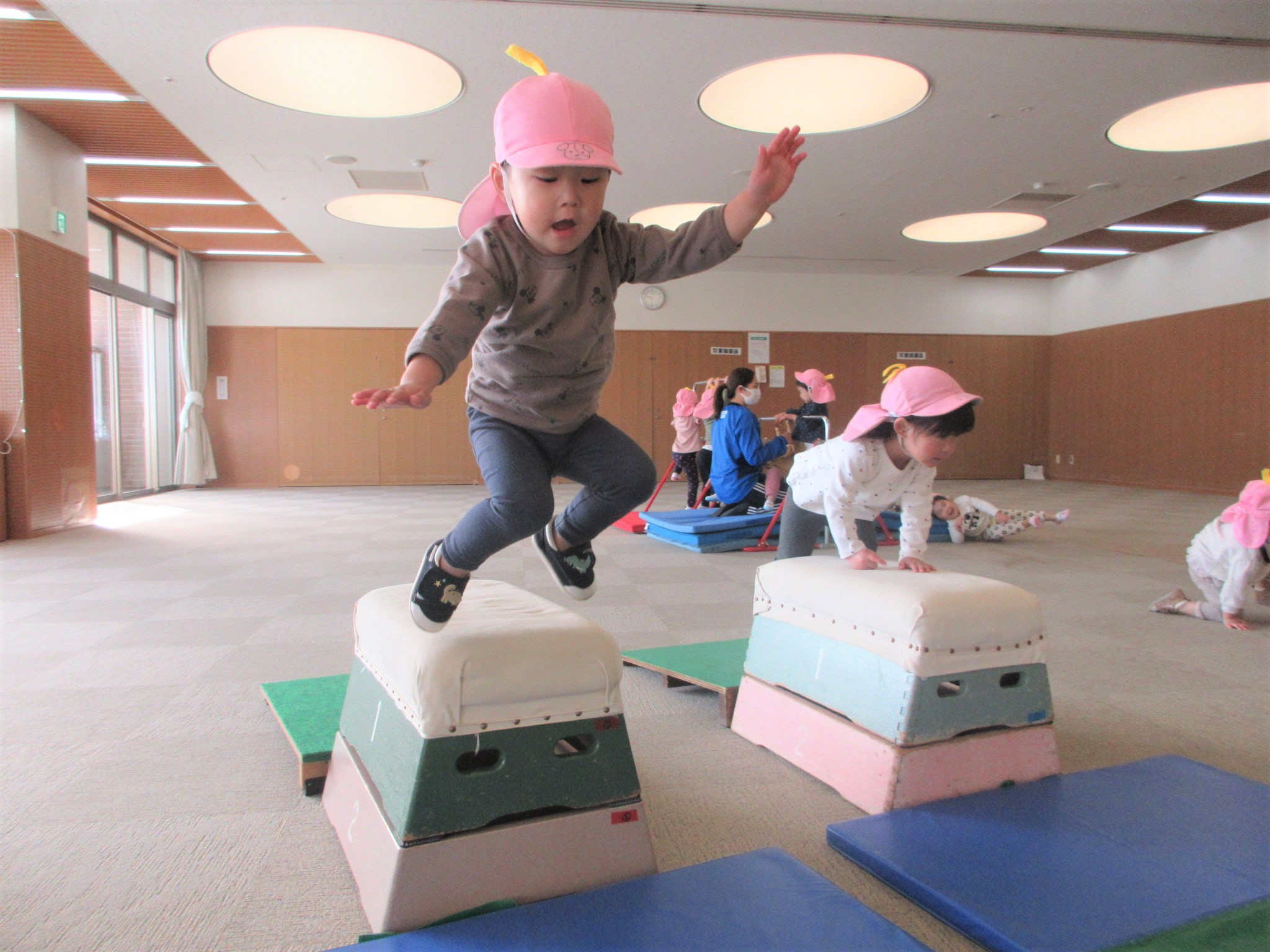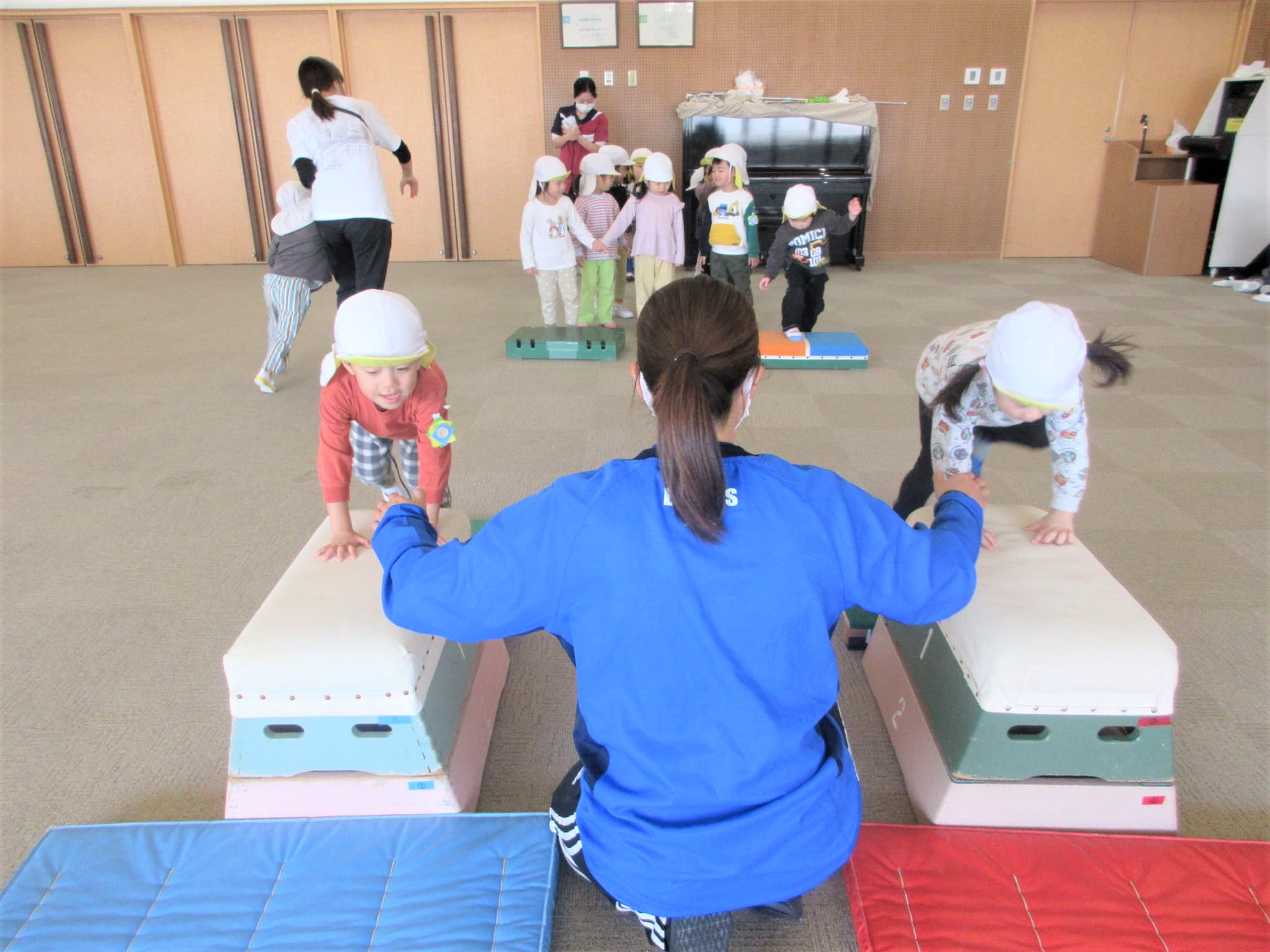 跳び箱に手をついた“まま”ジャンプ!!・・・のコツを掴んでいる最中です♪