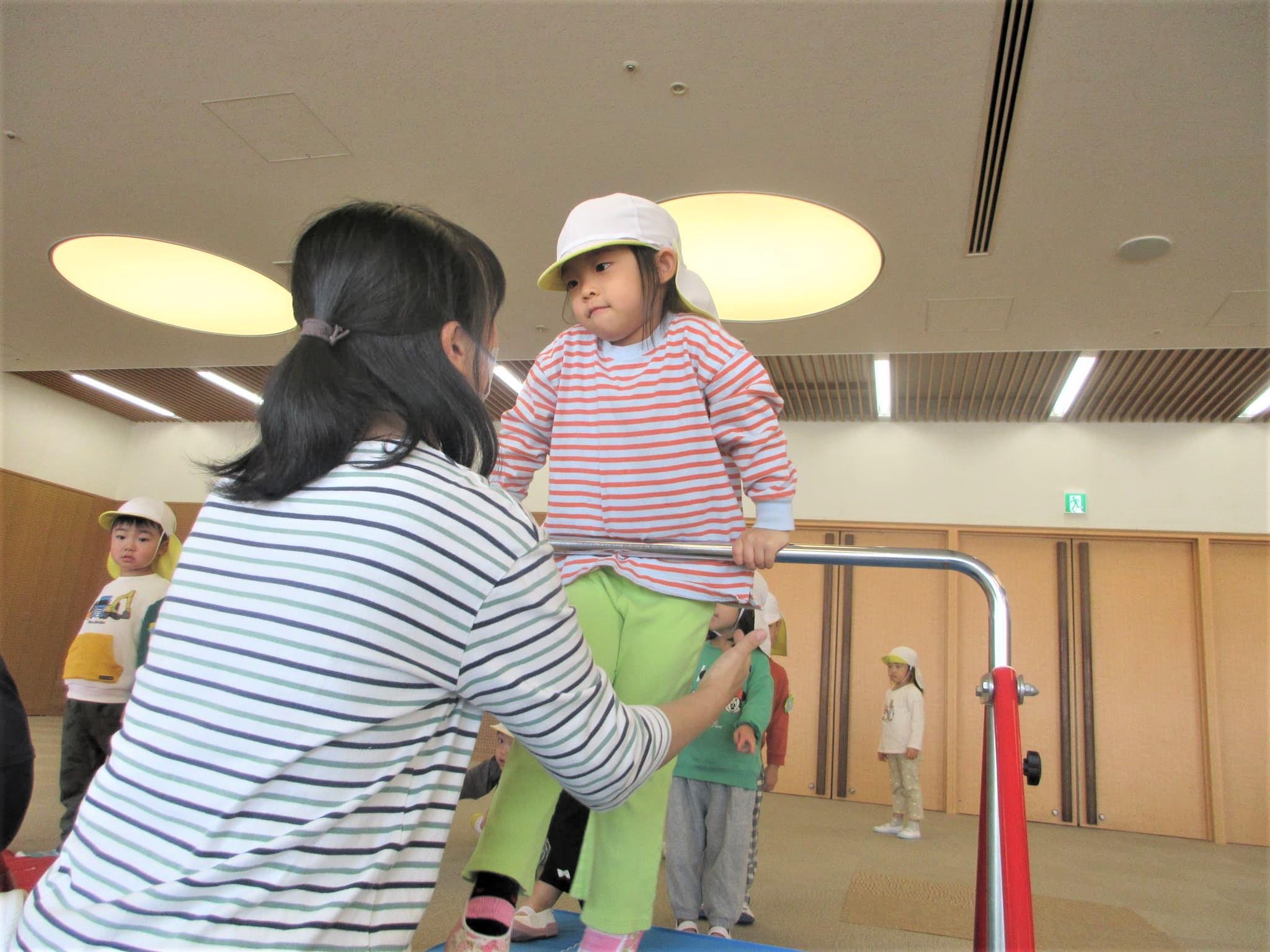 体操の先生の膝を借りながら・・・♪