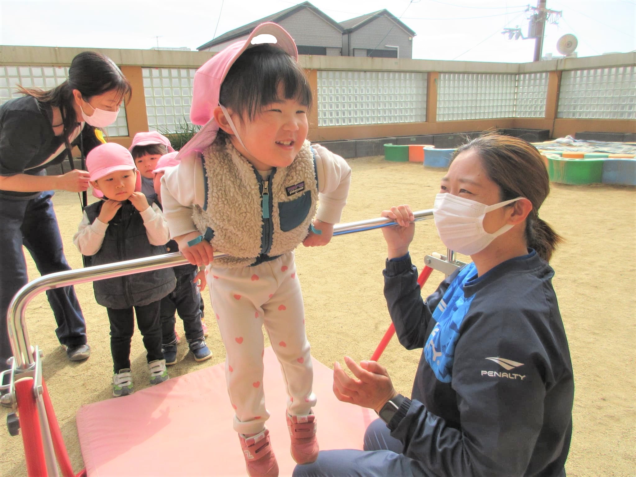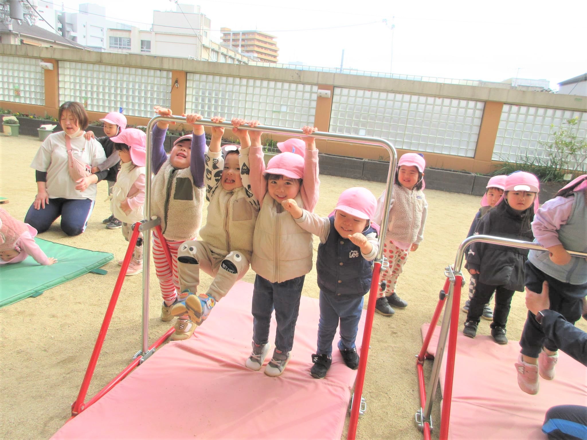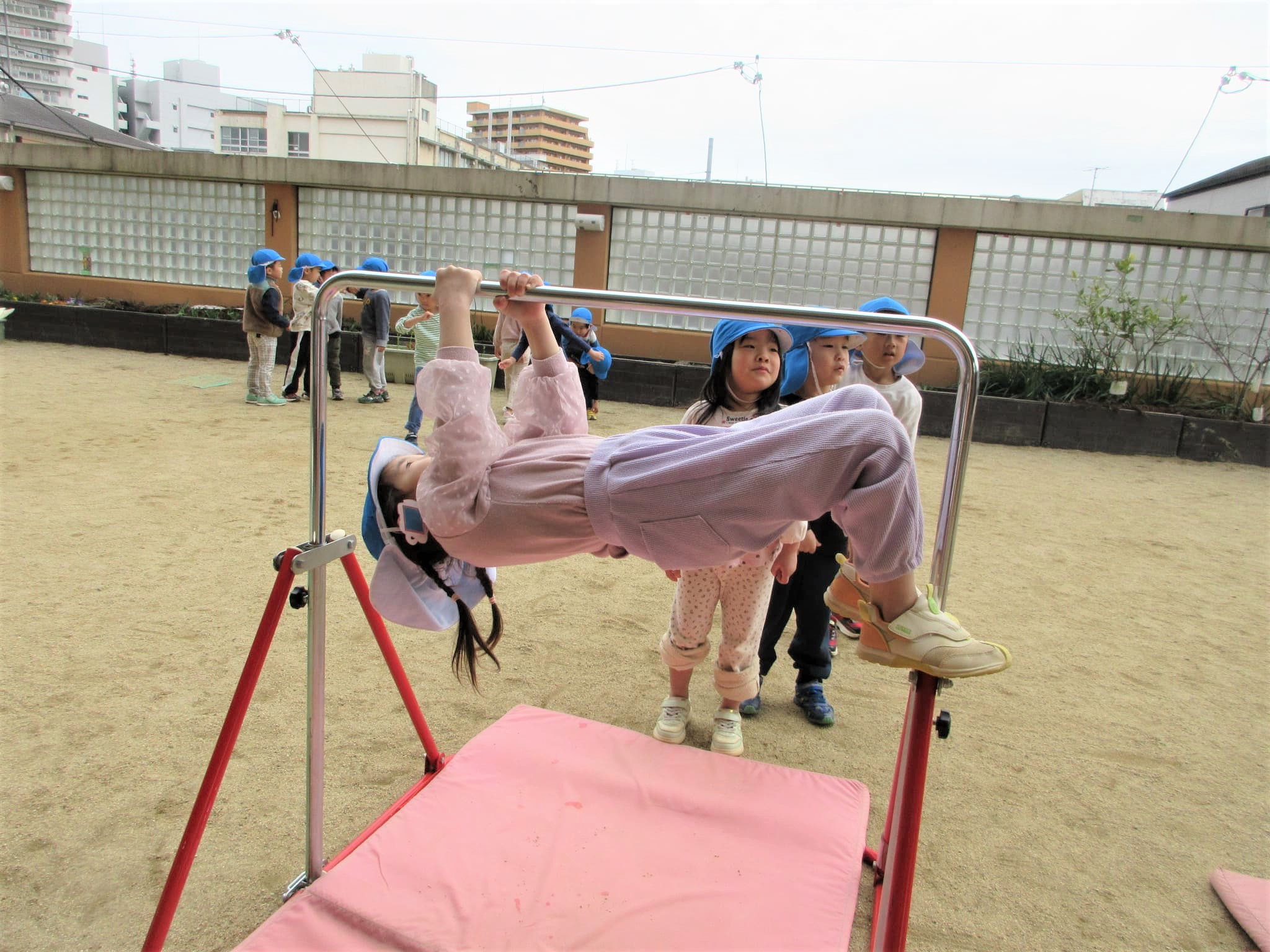 高い方の鉄棒を速くやりたくて、うずうずしている子どももいました(笑)
