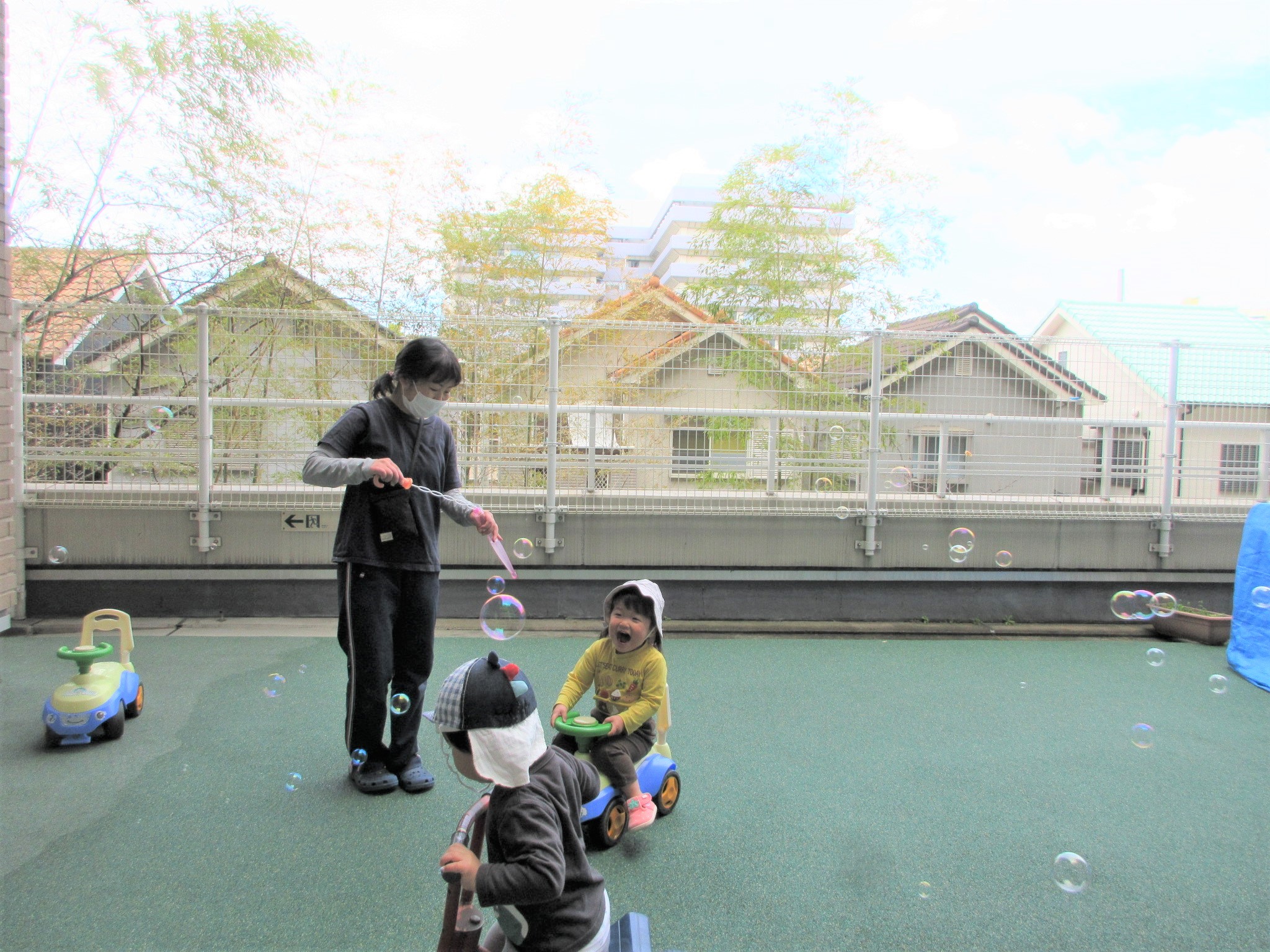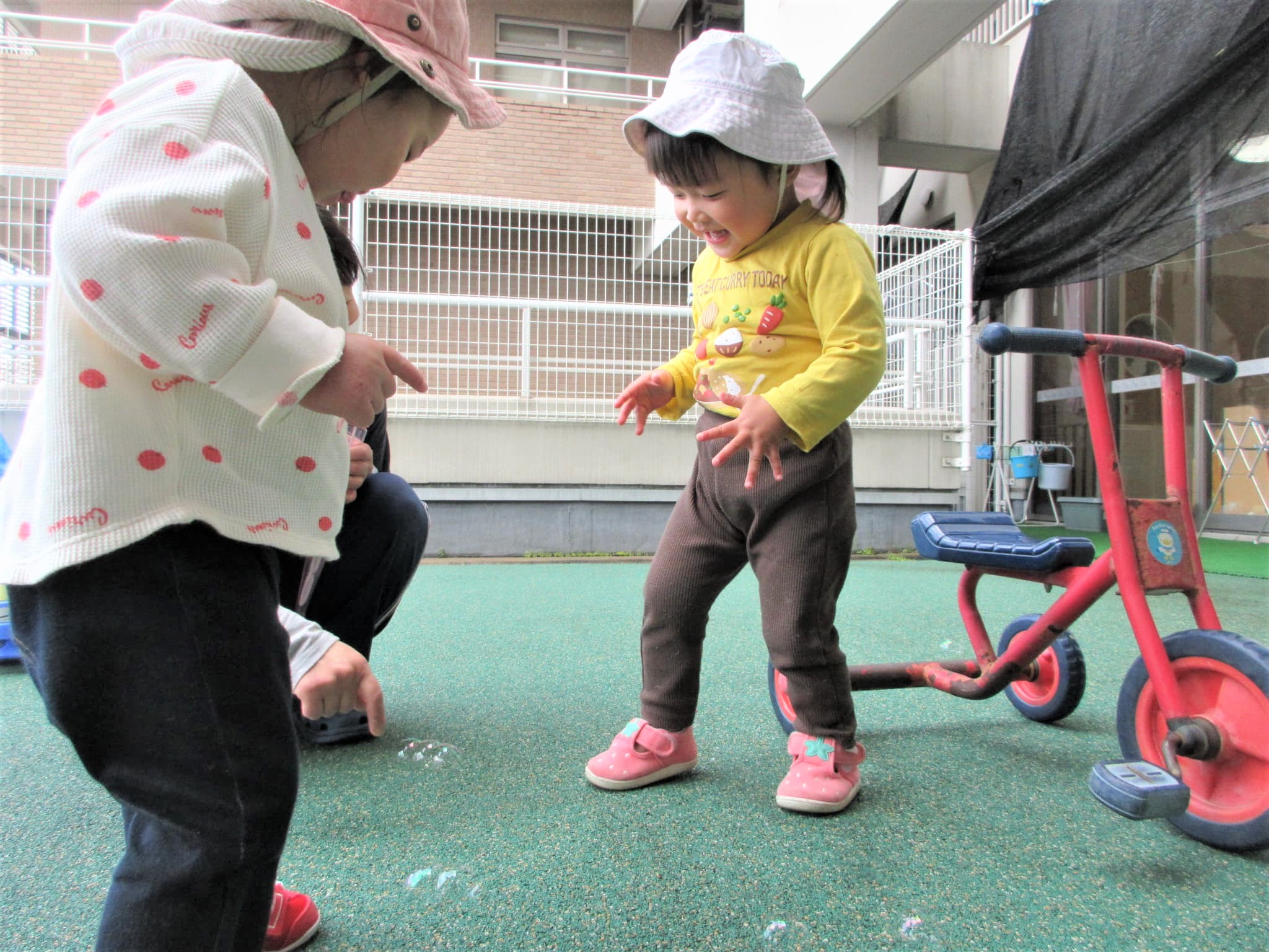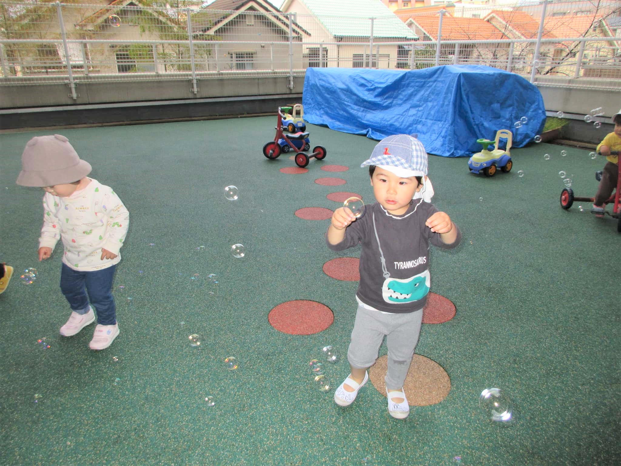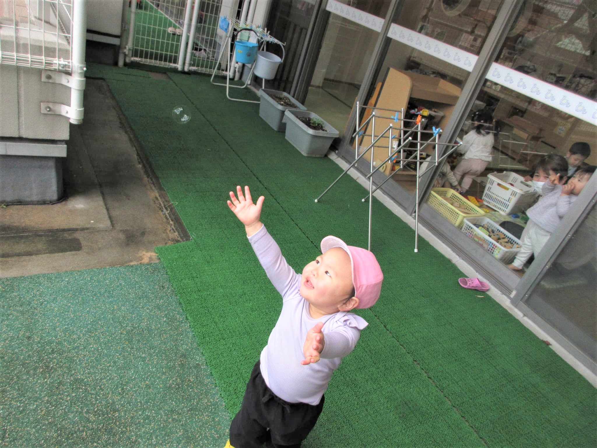 しゃぼん玉を追いかけたり突っついたり・・・(笑)