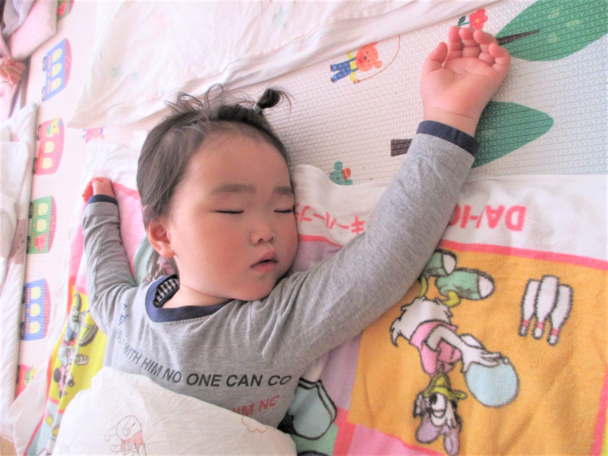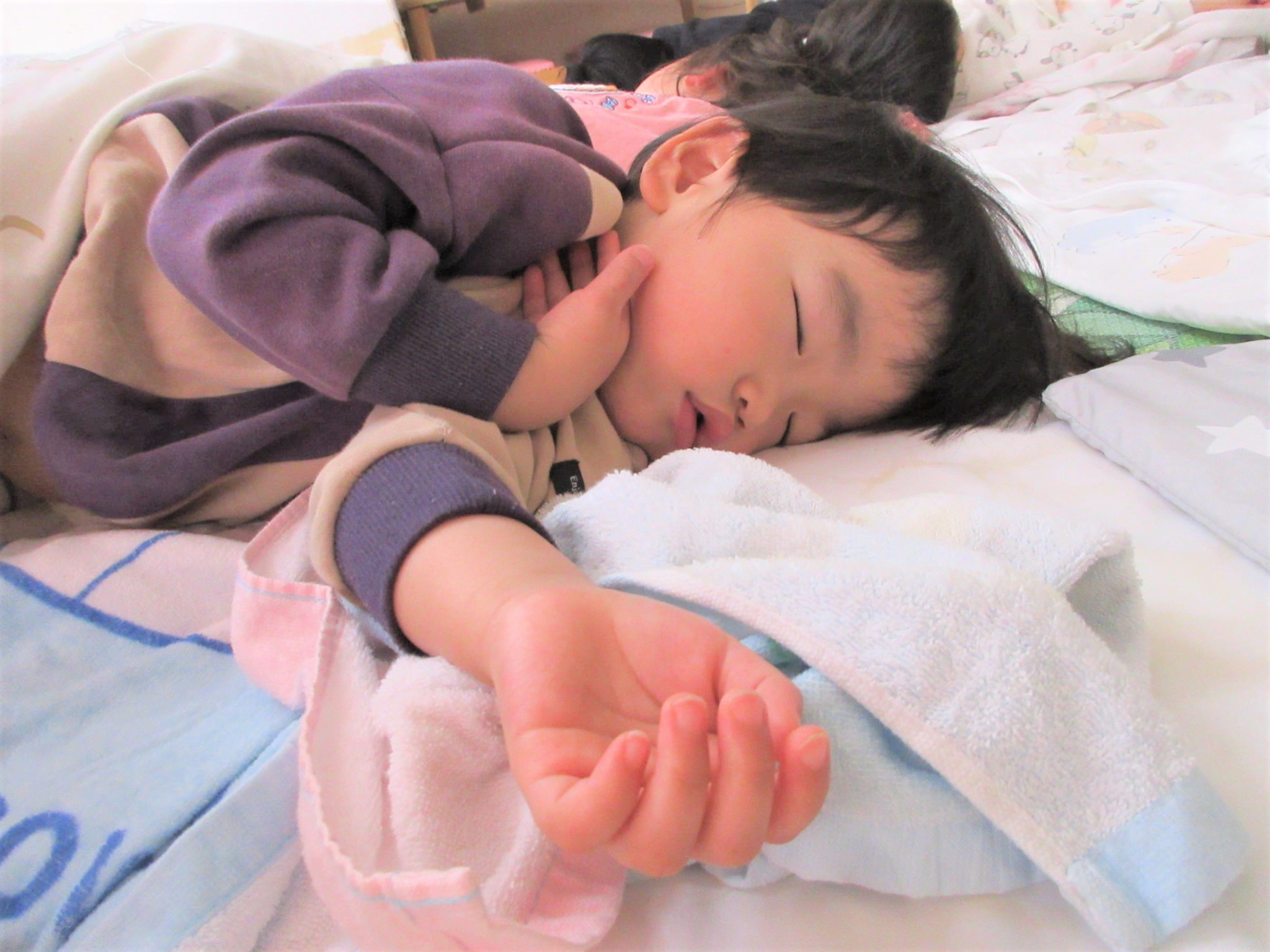 遊びとお腹が満たされて布団に入ると“きもちいい♪”という経験を積み重ねていくことで