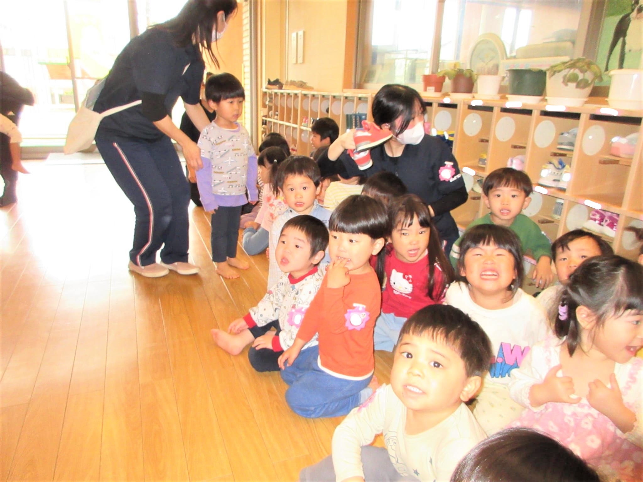 朝からの雨で園庭では行えませんでしたが・・・