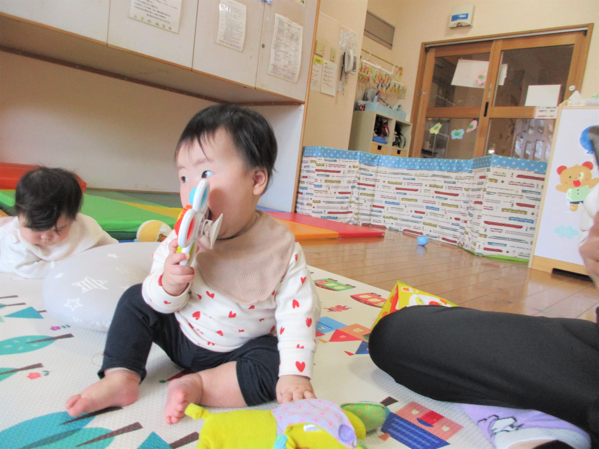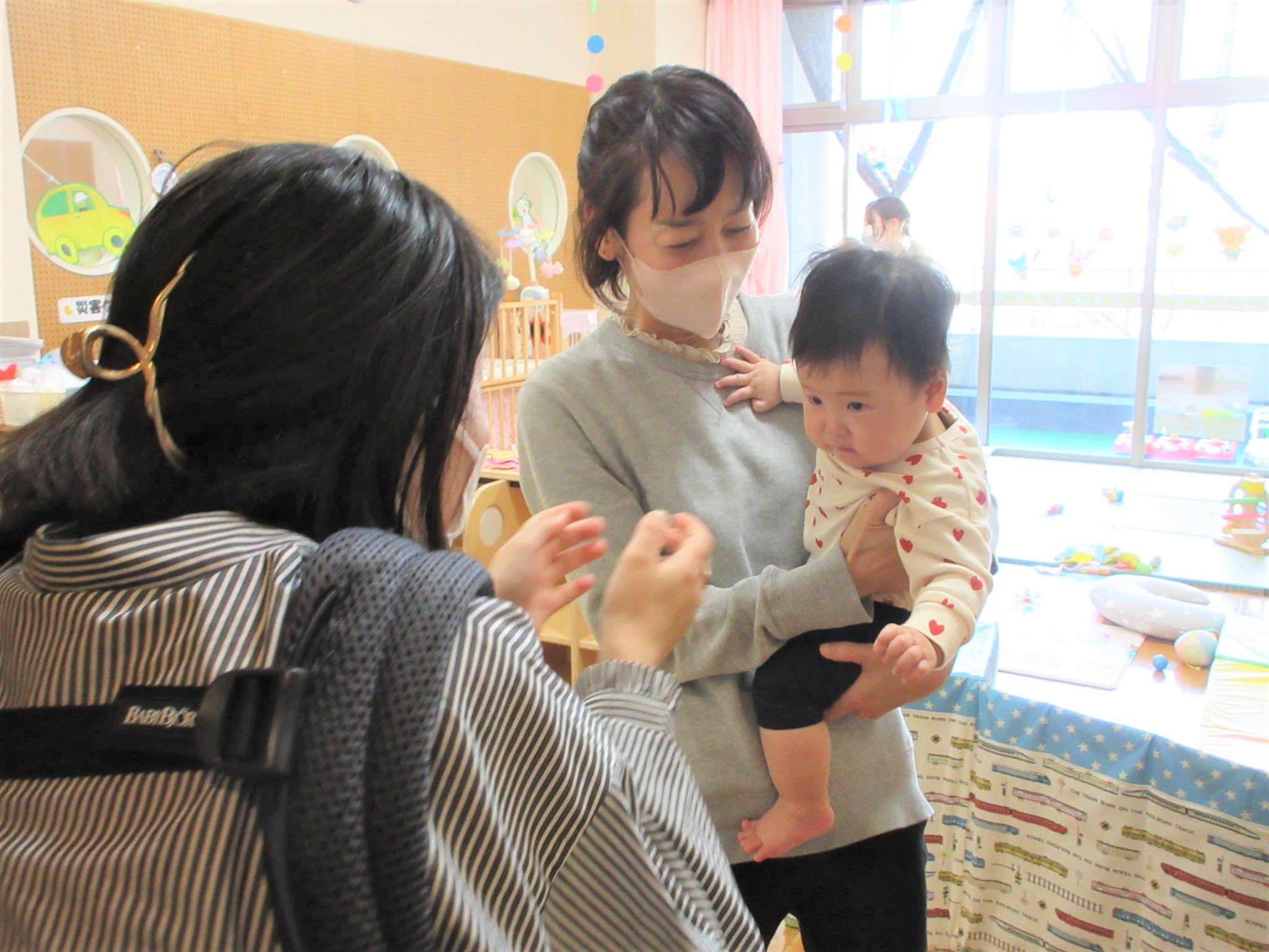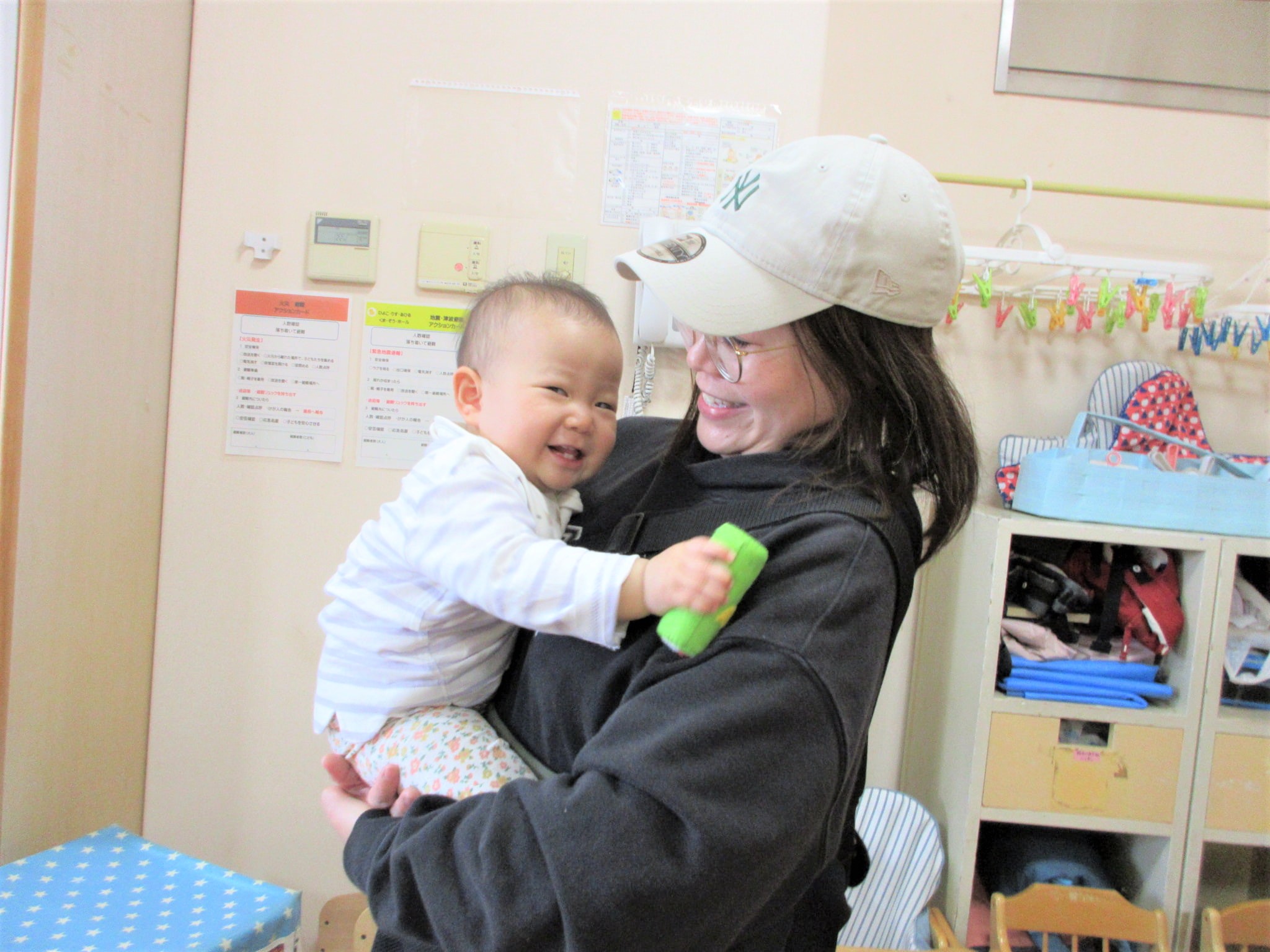先生が側にいたり抱っこしていると落ち着いて遊ぶ姿もありました☆