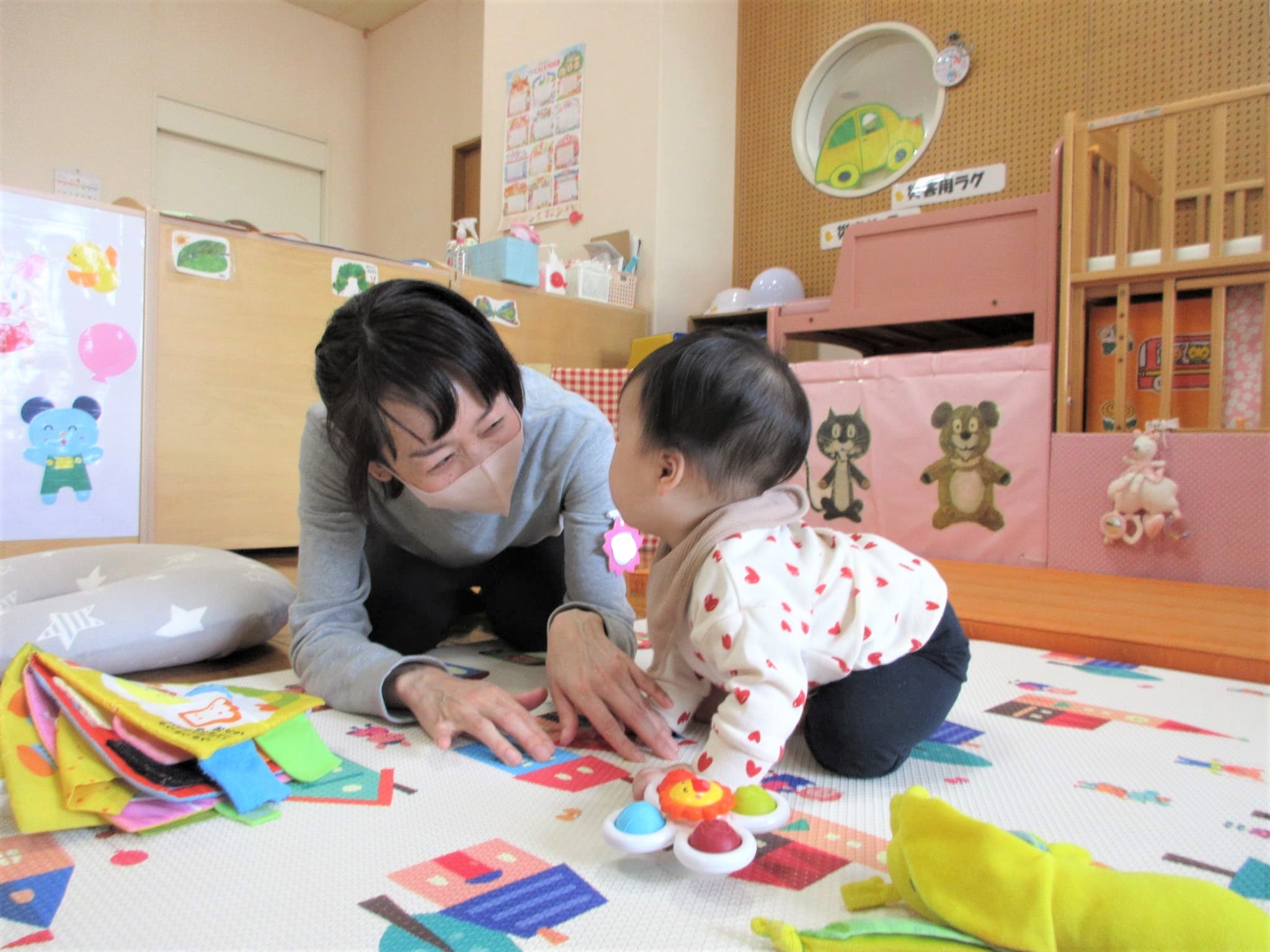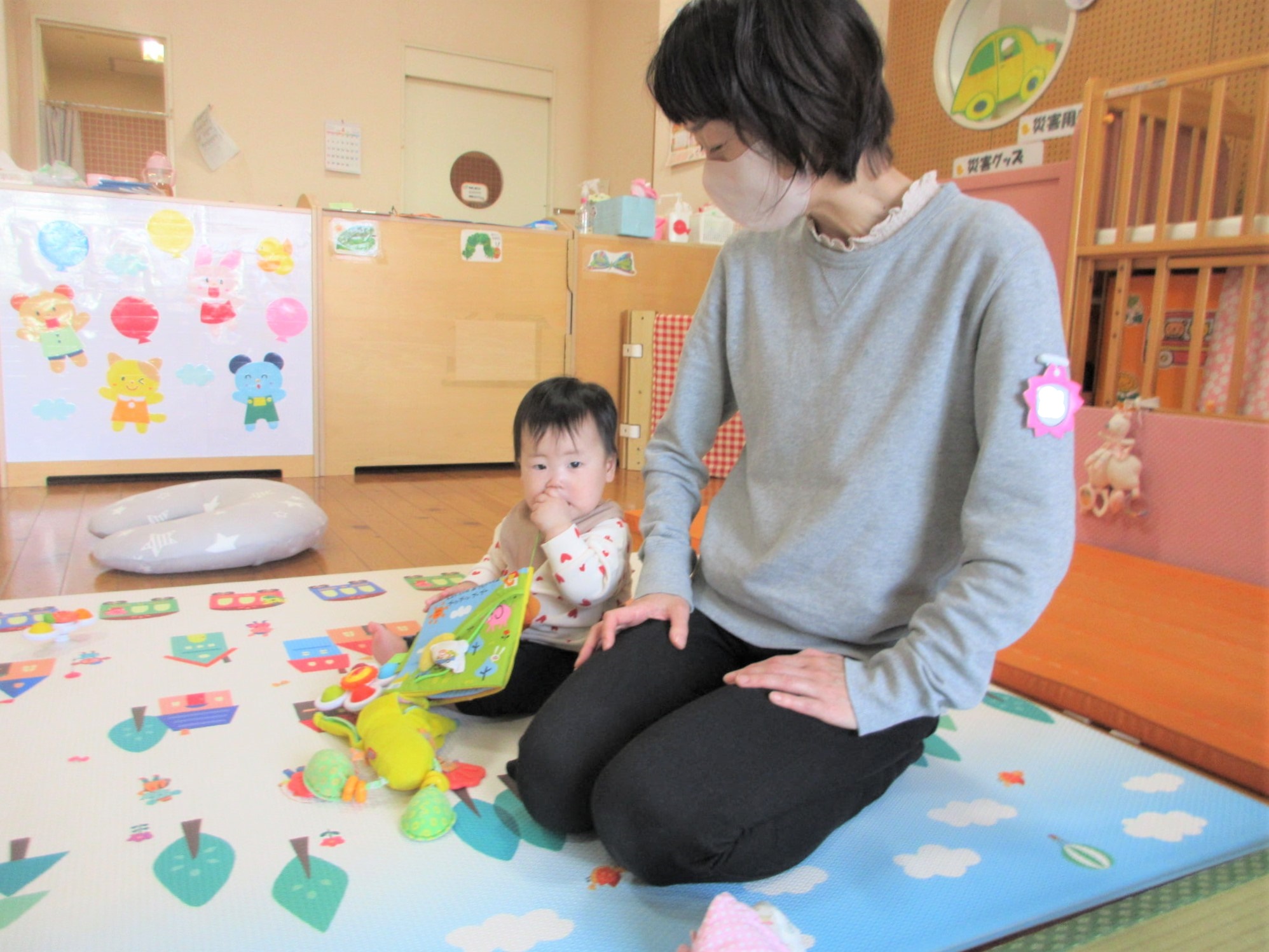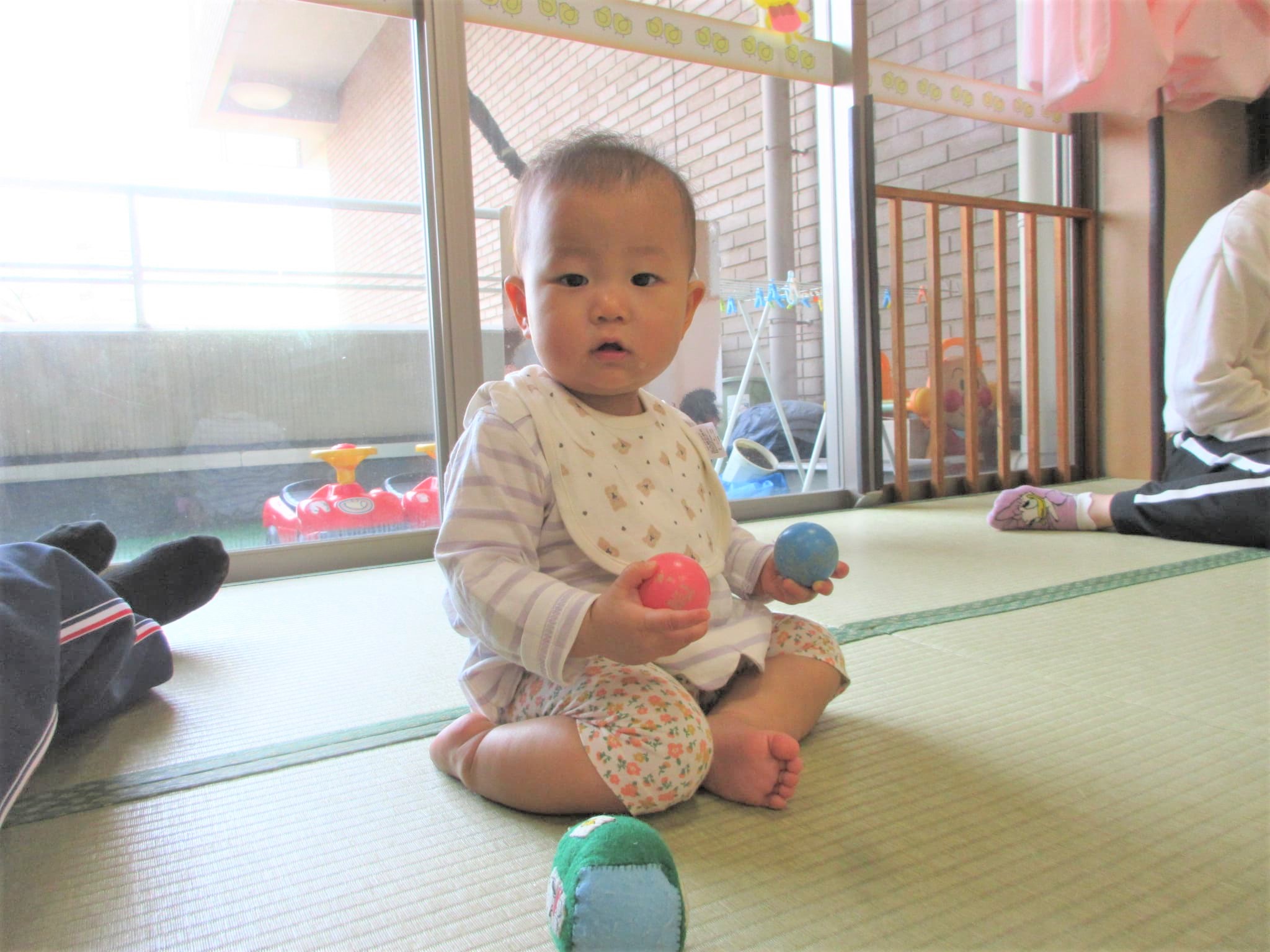 先生が側にいたり抱っこしていると落ち着いて遊ぶ姿もありました☆
