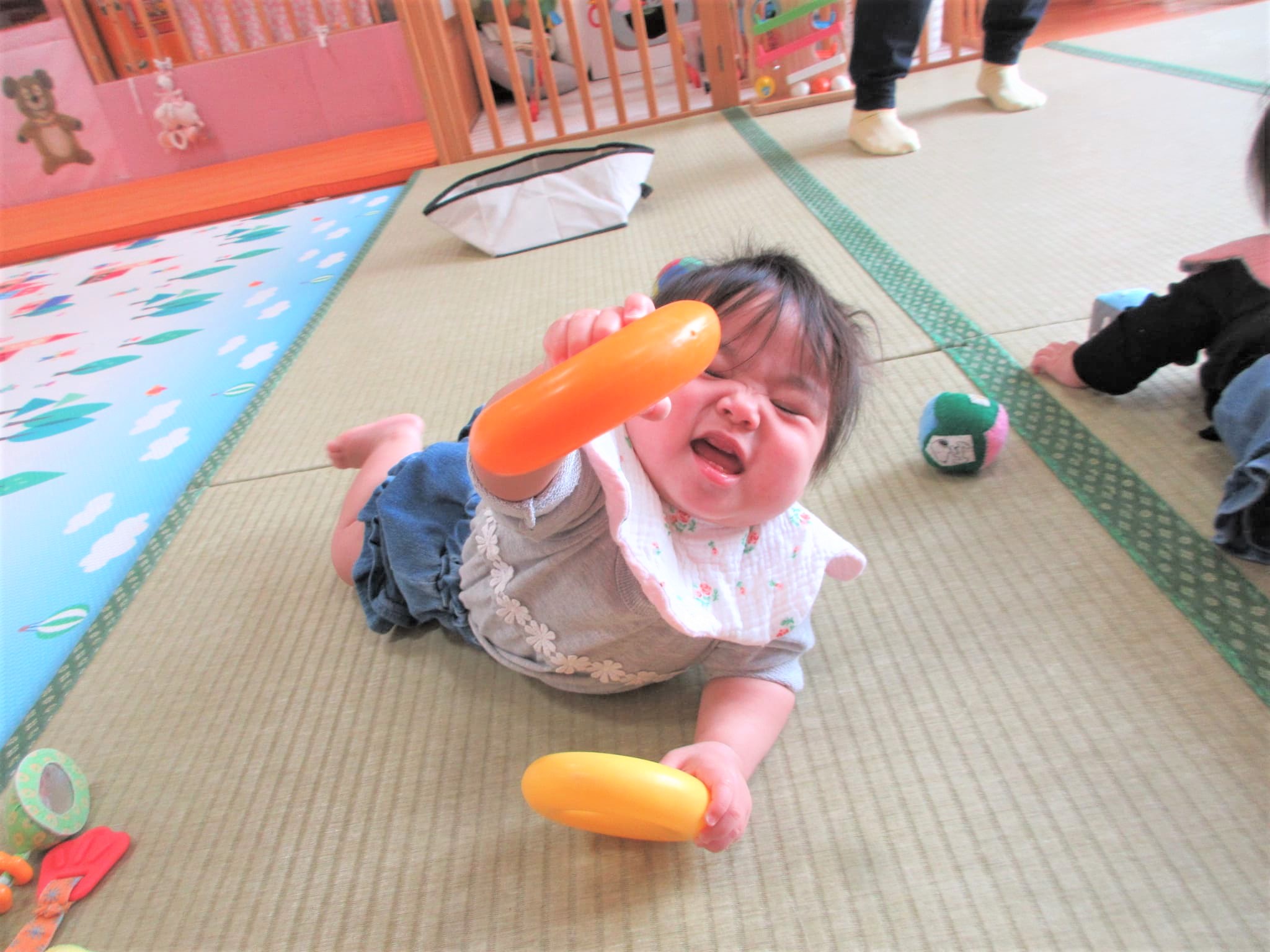 笑顔もかわいいのですが、ボールを掴もうとする真剣な表情もかわいいでしょ!?(笑)