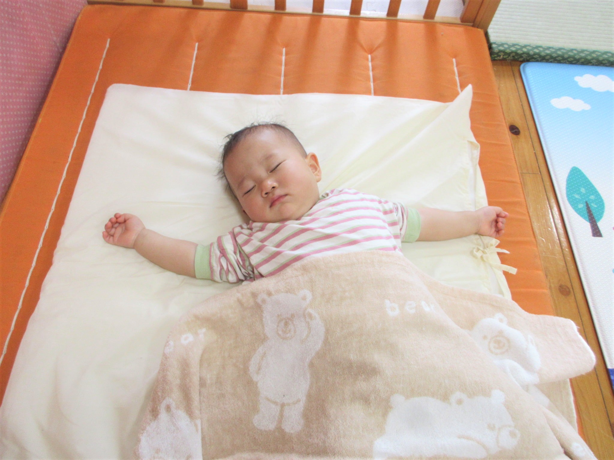 布団で眠る気持ち良さを感じながら「ここは じぶんの ねるばしょ」を知っていきます☆