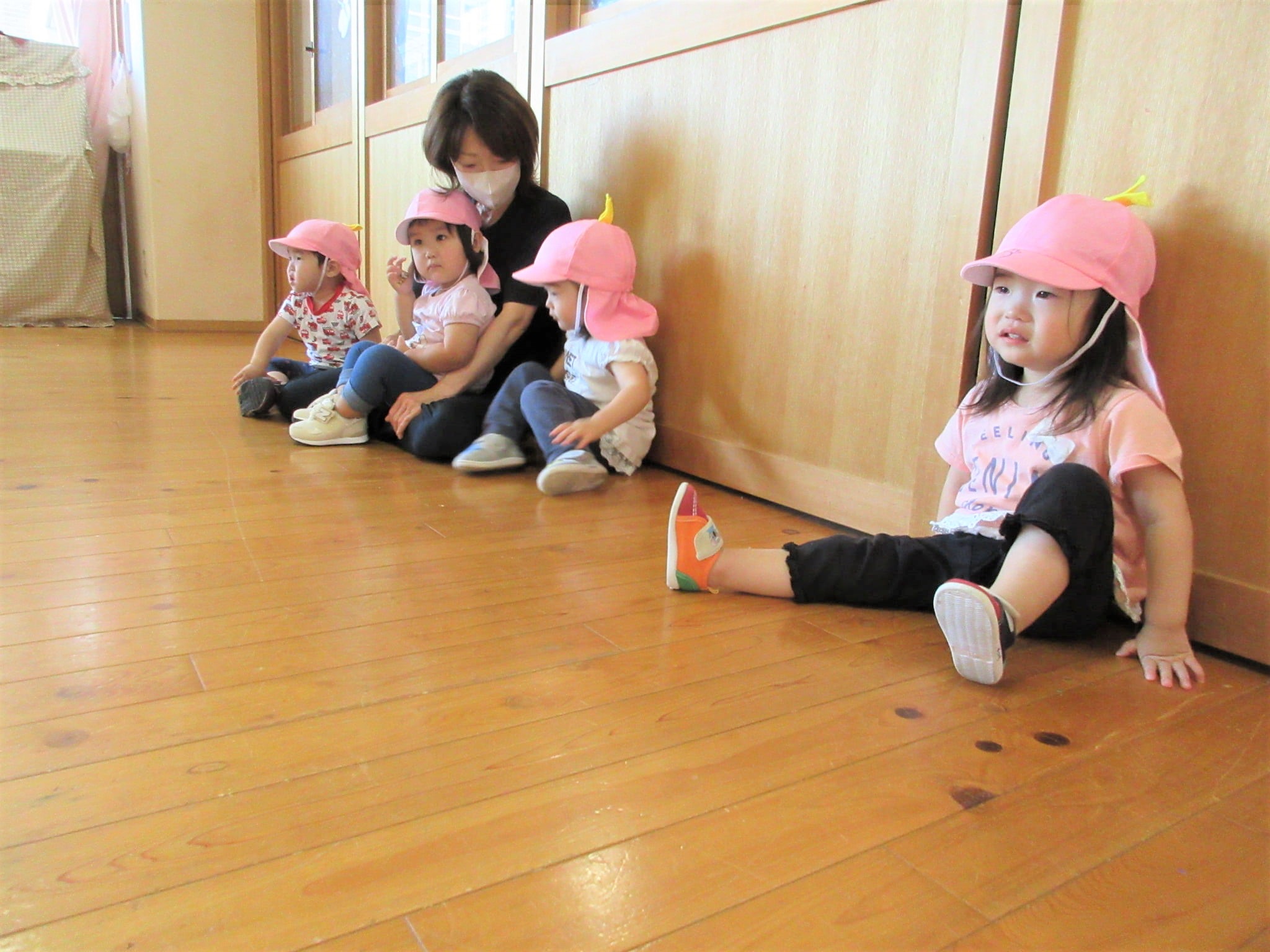 『Mちゃん』先生の足元に座って友だちを見ている子どもです!