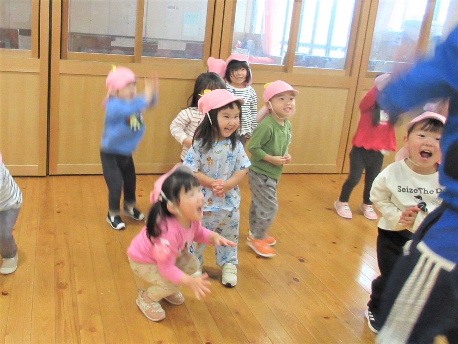 「きょうは たいそう きょうしつや~♪」と、楽しみにしていた子どもたち・・・♪