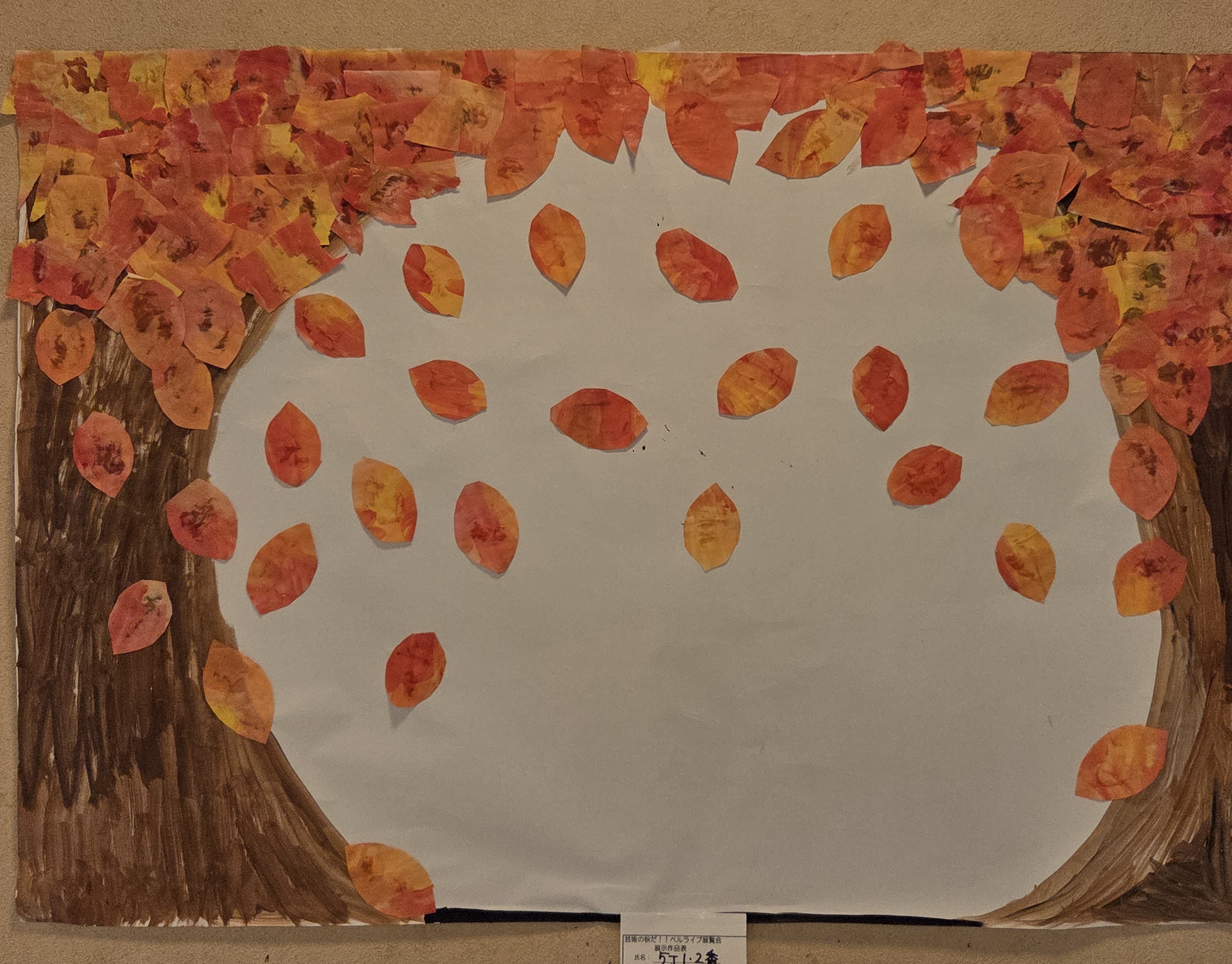葉っぱ作りで半紙に絵の具で色を付けていた時は「何になるの?」と中々イメージできにくい様子でしたが