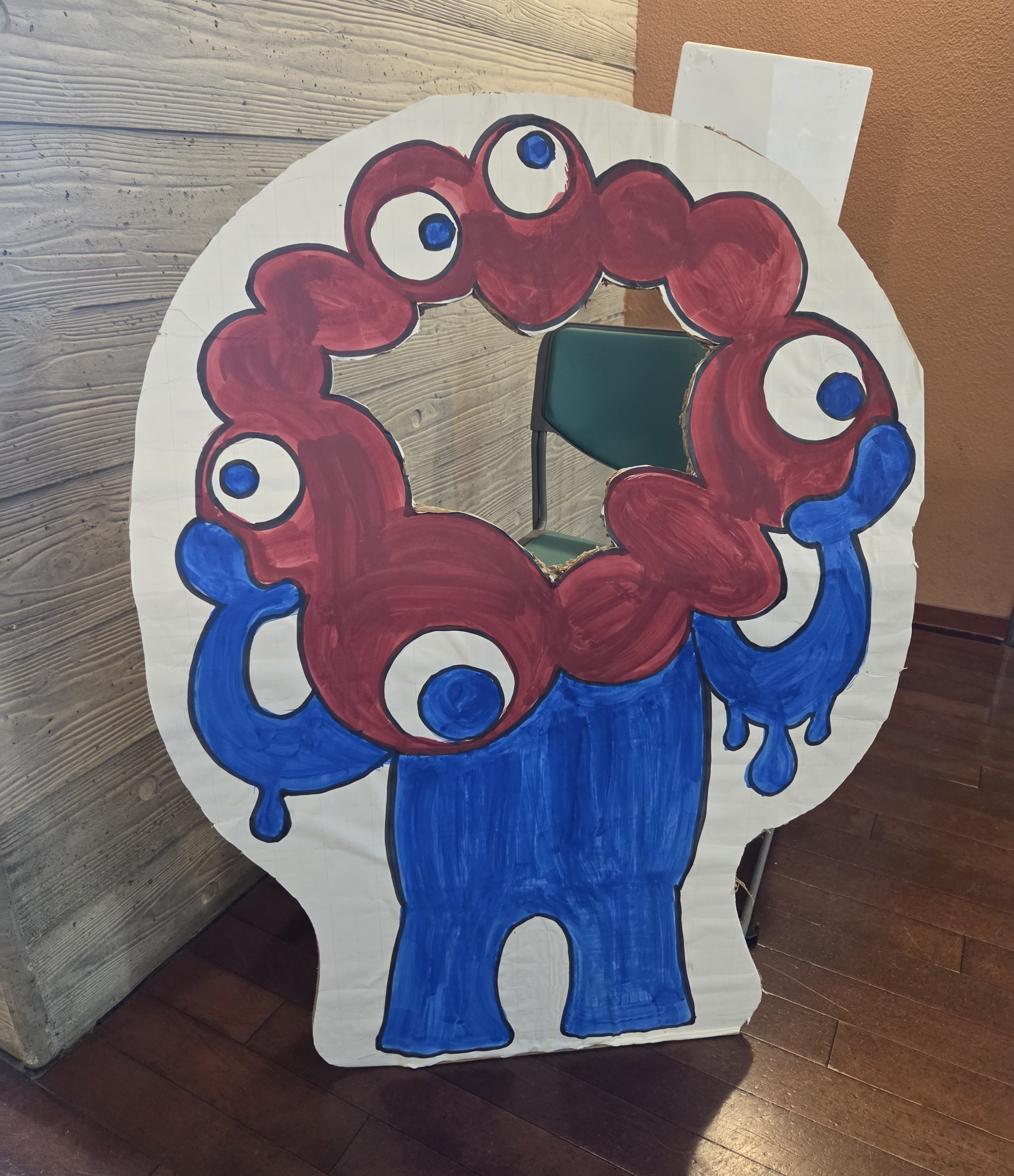 そして、職員手作りのミャクミャクの顔出しパネルまで!
