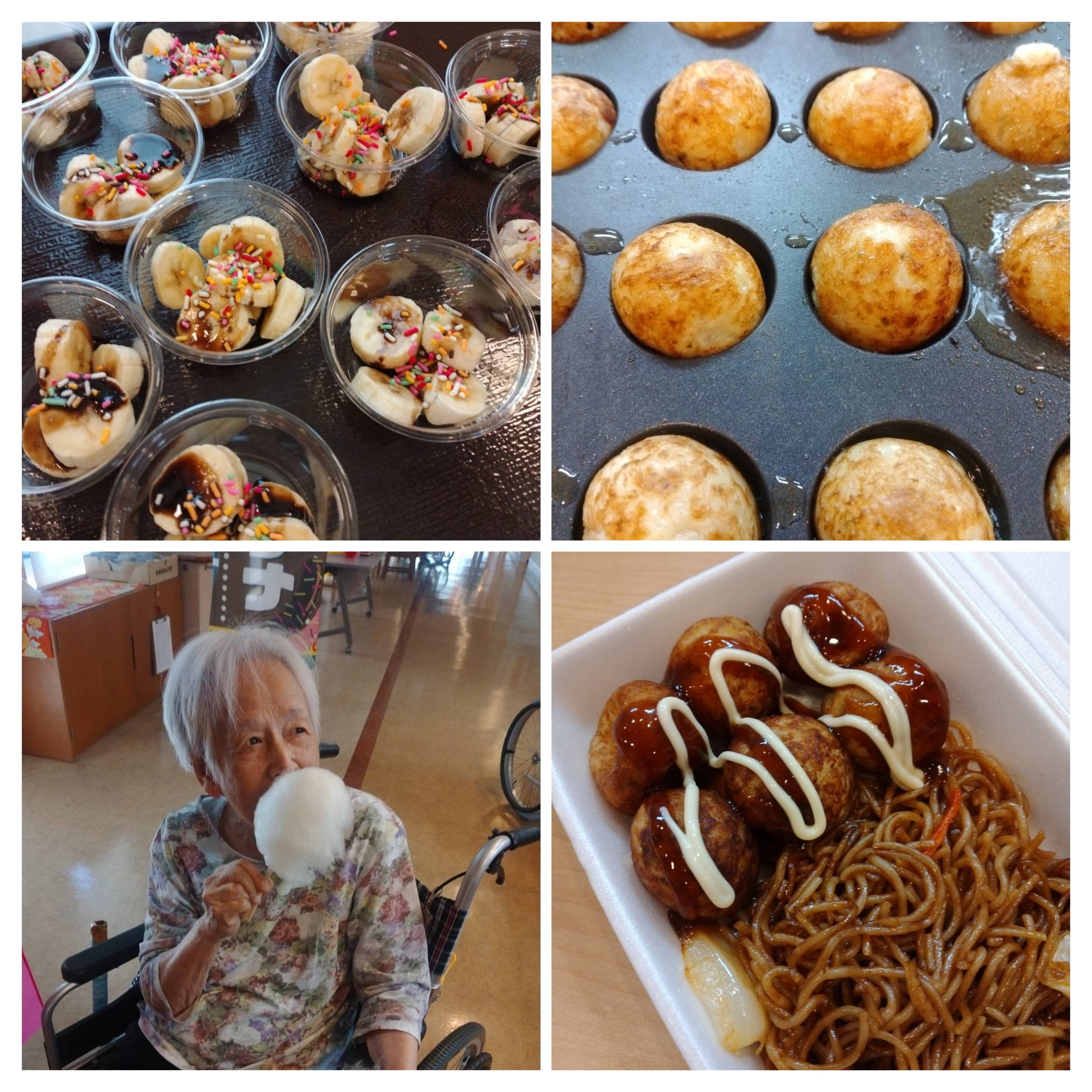 チョコバナナや綿菓子、たこ焼きの屋台♪