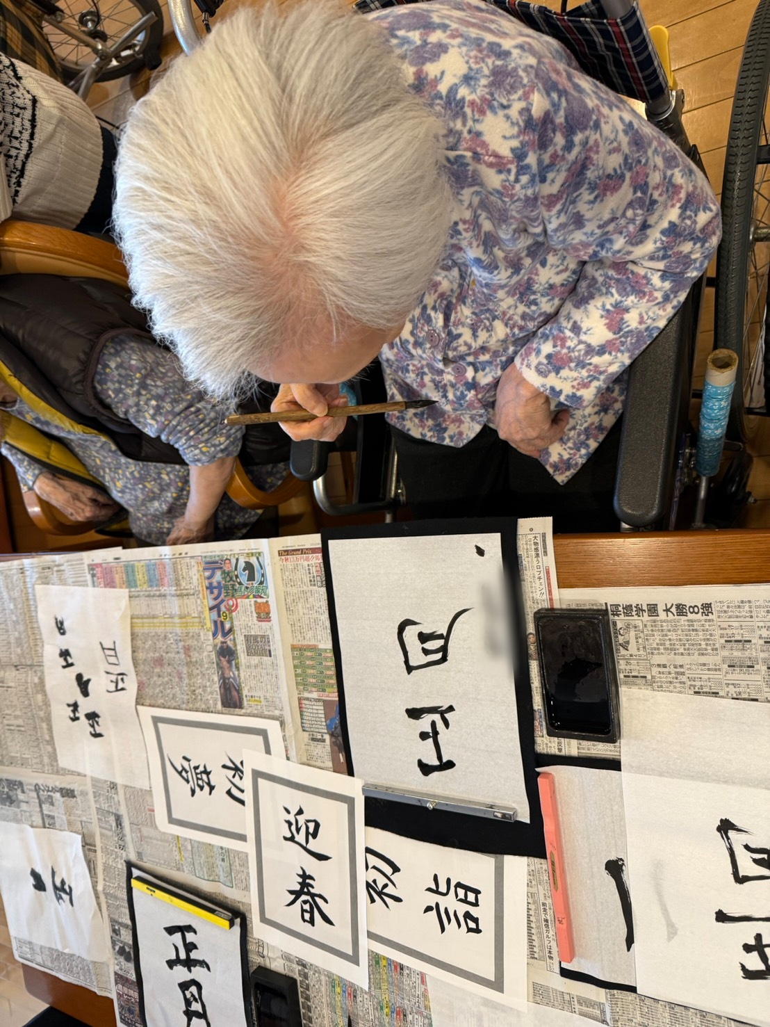 『上手く×かな?』と話しながらも見本をしっかりと見て真剣な表情で取り組まれていました。