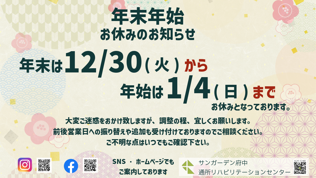 【通所リハビリテーションセンター】年末年始のお知らせ